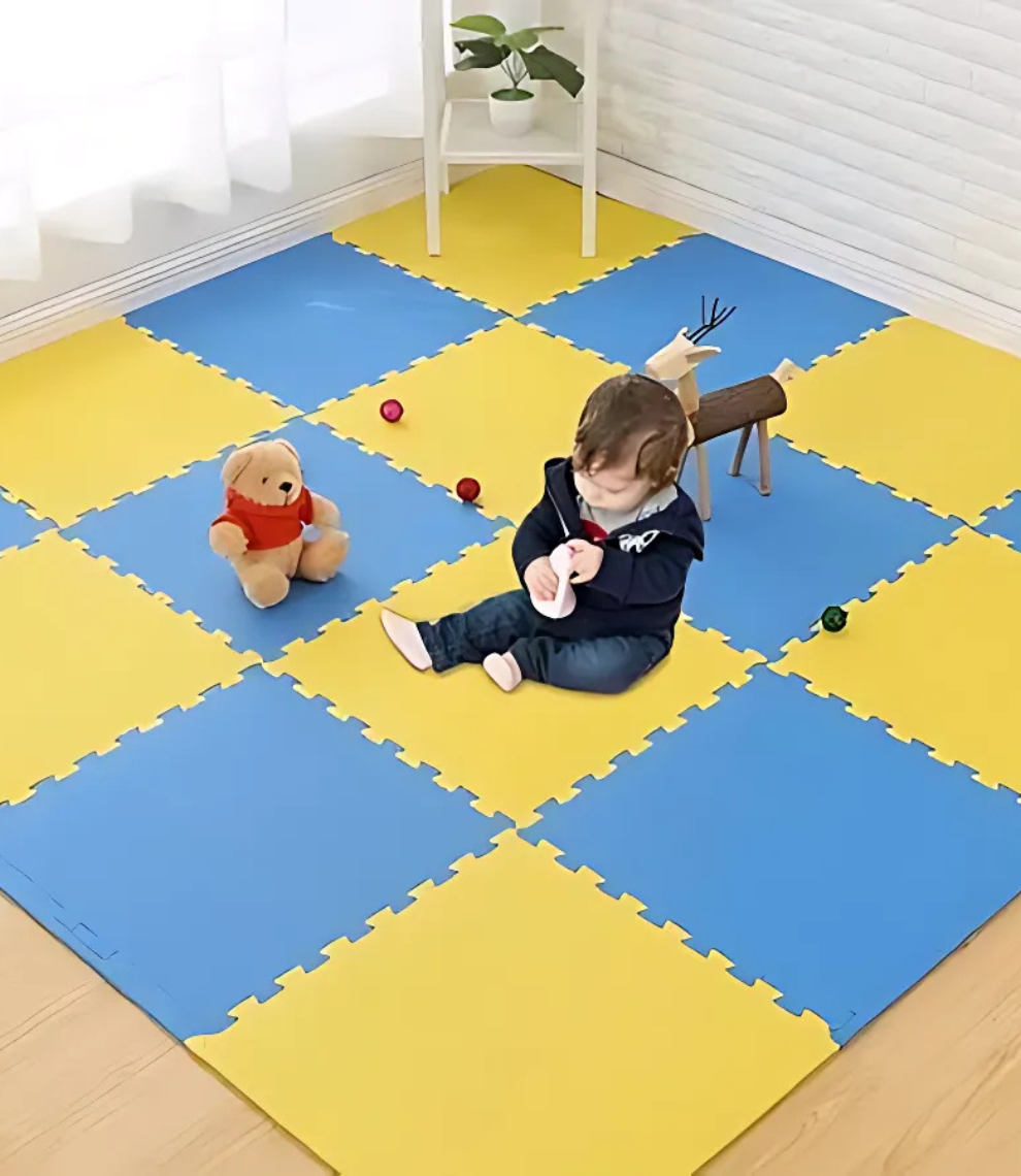 At AP MATS, we are proud to introduce our Kids Mats, designed to create a safe, comfortable, and engaging environment for children to play, learn, and grow. Crafted from premium EVA foam, these mats provide a soft cushioning layer that protects children from hard floors and accidental falls, making them an essential addition to playrooms, daycares, schools, and homes. Each set of our Kids Mats includes 4 interlocking tiles, with each tile measuring 60 cm x 60 cm, covering a total area of 16 square feet. The mats are designed with an easy interlocking puzzle system, allowing users to effortlessly connect and disconnect the tiles for quick installation, rearrangement, or storage. This feature makes it simple to expand the play area as needed or create custom layouts that fit specific spaces.